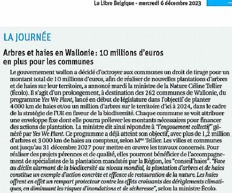 - Arbres et haies en Wallonie : 10 millions en plus pour les communes